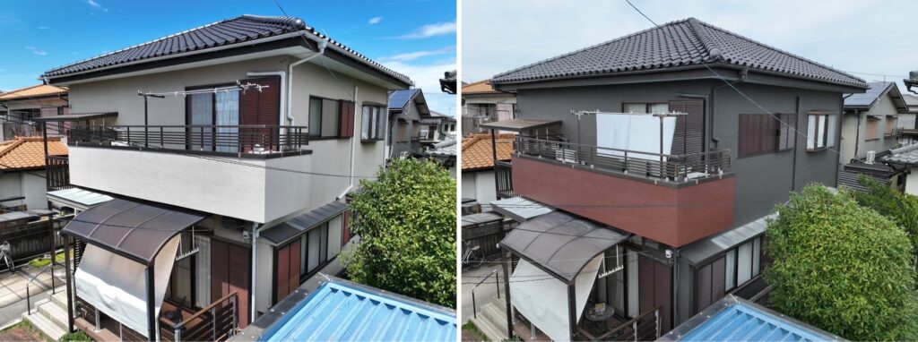 春日部市 I様邸 工法:外壁屋根塗装工事 使用材料:・外壁使用材料 アステック フッ素REVO・屋根使用材料 アステック スーパー遮熱サーモF 施工前 施工後