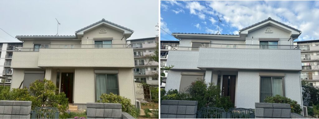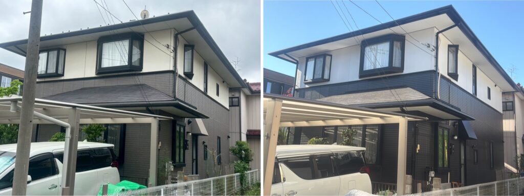 春日部市 N様邸 工法:外壁屋根塗装 使用材料:・外壁使用材料 アステック フッ素REVO-1000IR・屋根使用材料 アステック スーパー遮熱サーモF 施工前 施工後